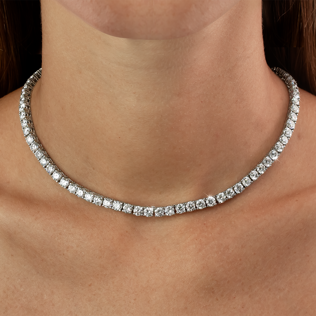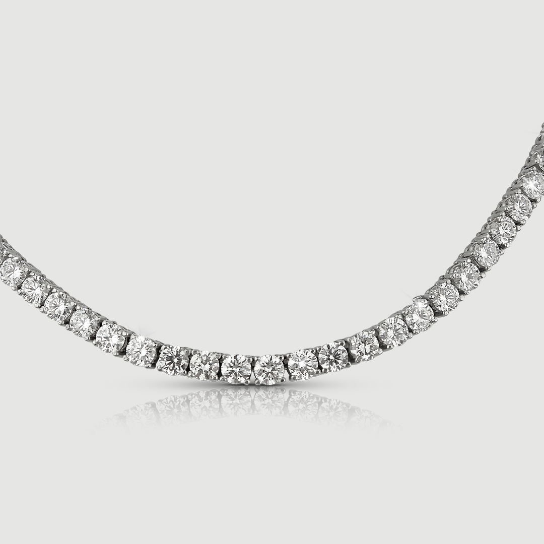 Collar realizado en oro blanco 18K con 107 brillantes Lab-Grown calibrados de 3.80mm cada uno, color D/E, claridad VVS. 22.28 cts T.W.Regular price $18,000.00 USDSale price $18,000.00 USD Regular priceUnit price / per